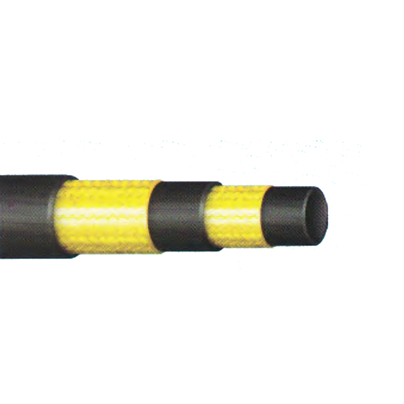 膠管由耐油的內膠層、兩層高強鋼絲編織增強層、耐天候的外膠層組成。