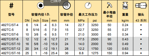 適用介質(zhì):石油基液壓油,水乙二醇,潤滑油,空氣和水。用于1.7MPa以上的空氣時(shí),軟管需針刺。