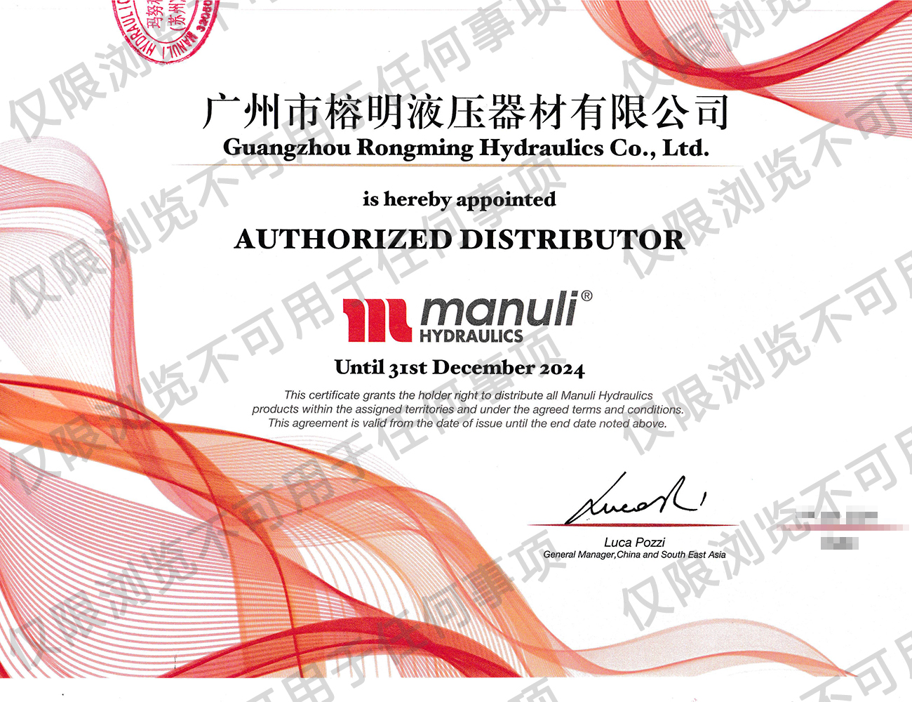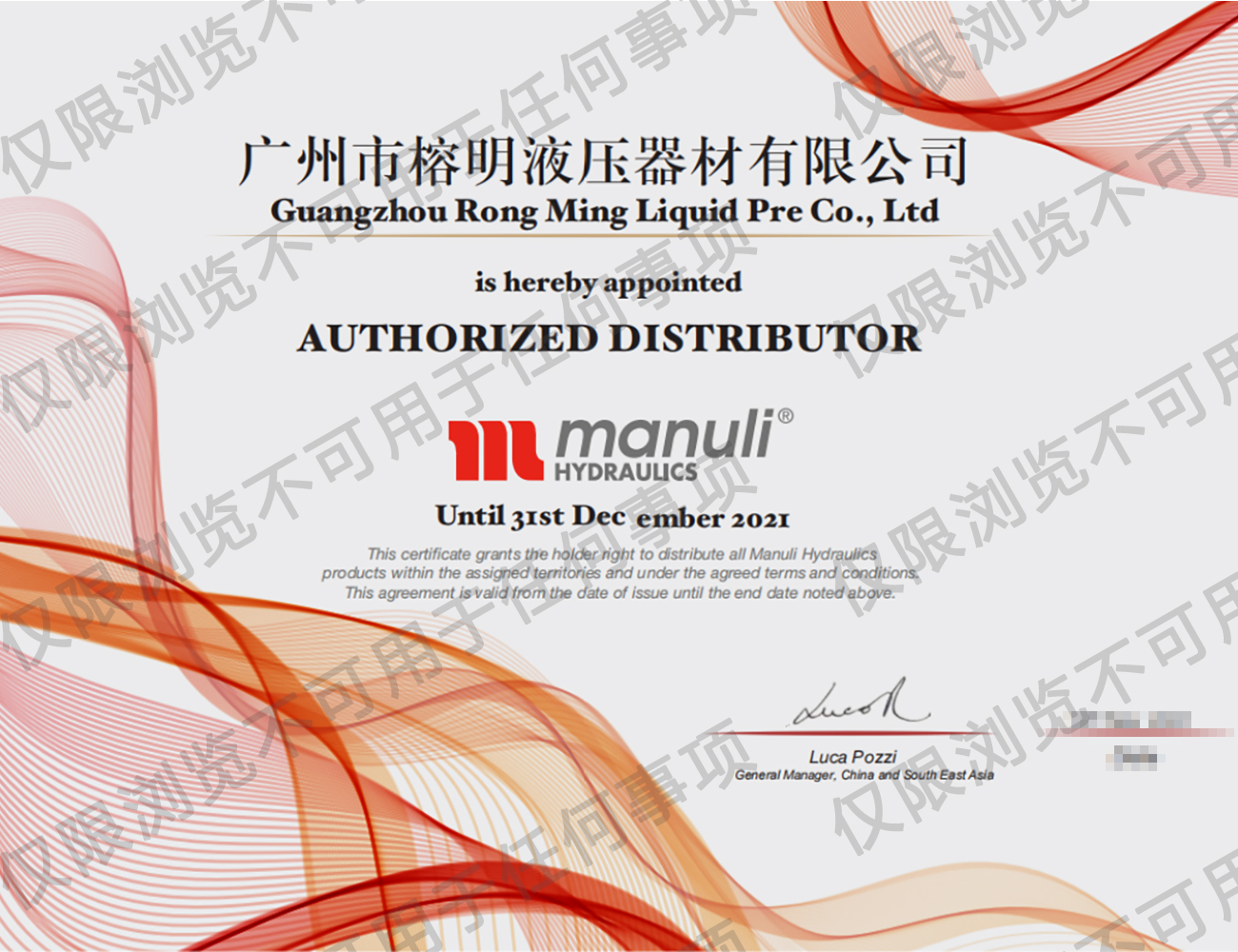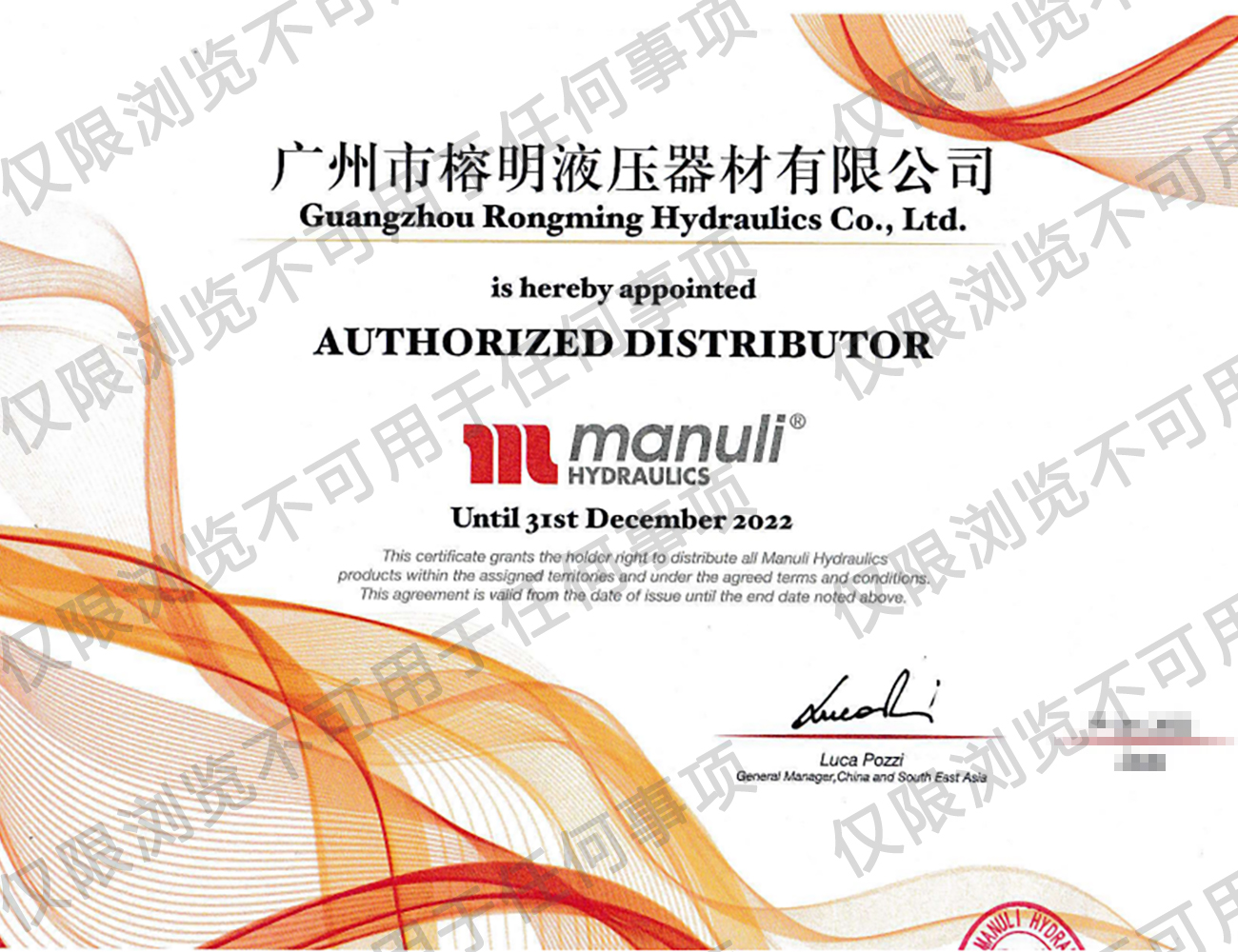 瑪努利公司授權代理經銷商代理證書