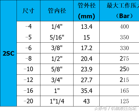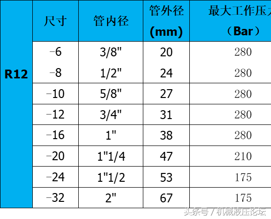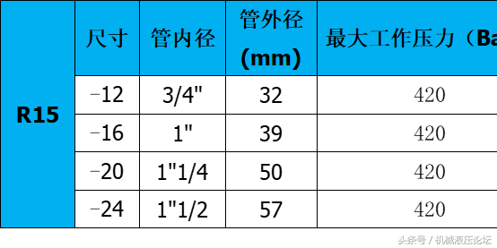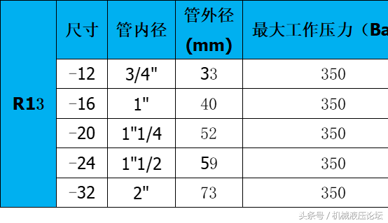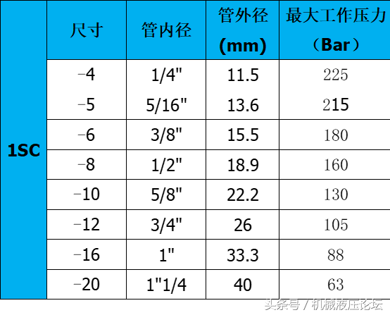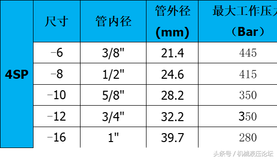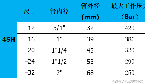附:常用液壓膠管內外徑及最高工作壓力參數(shù)
