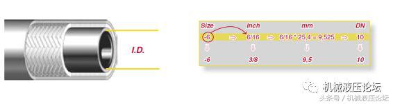 油管內徑大小的表示方法,軟管內徑有兩種表示方法,一種為尺寸(英文Size)以破折號加數(shù)字表示,數(shù)字表示內徑英寸數(shù)對應的十六分之一的倍數(shù),比如管內徑為3/8’ 可以表示為-6。