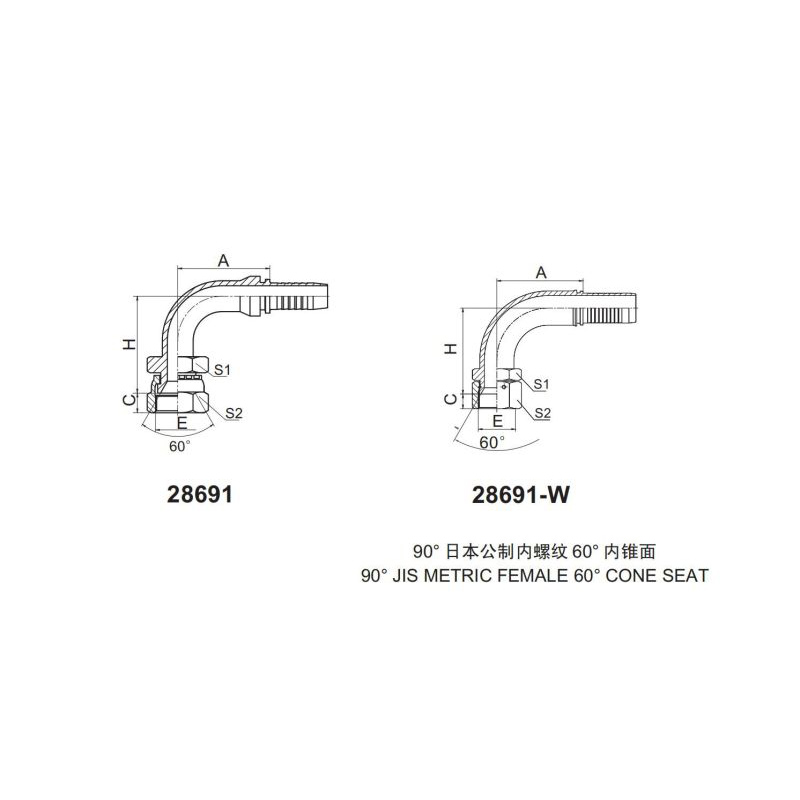 扣壓式接頭 28691和28691-W 90°日本公制內螺紋60°內錐面 管接頭 鎖母接頭
