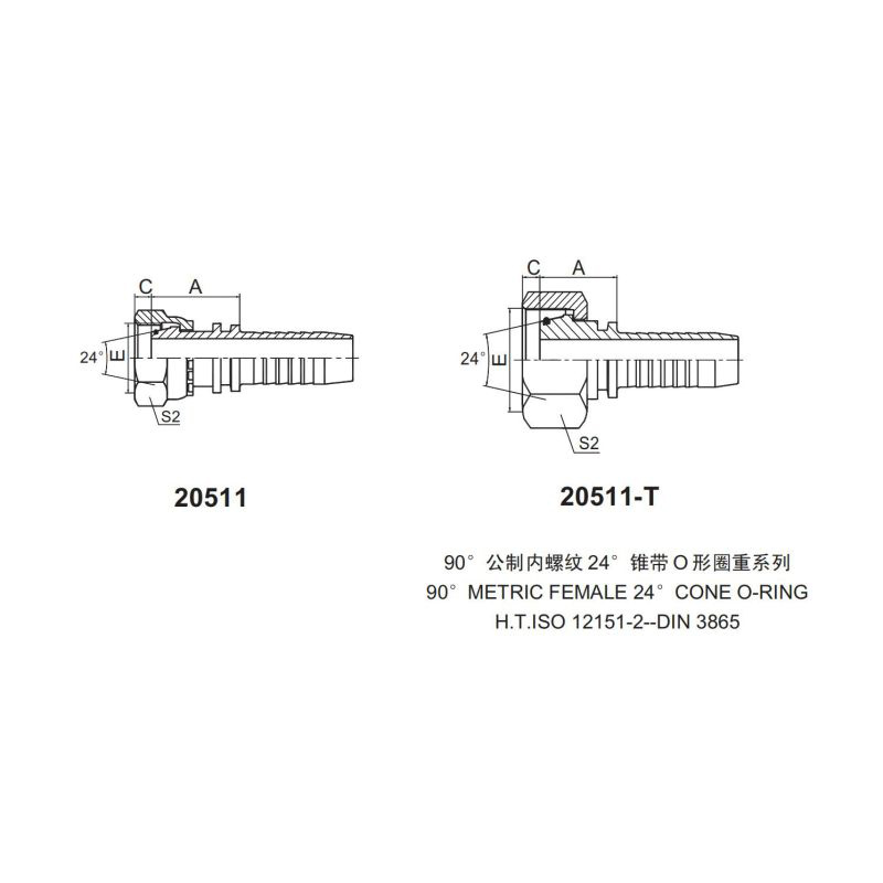 永華標準扣壓式接頭 2051190公制內螺紋 24錐帶O形圈重系列90 METRIC FEMALE 24 CONE O-RINGH.T.ISO 12151-2-