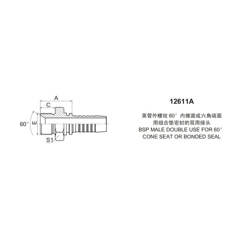 永華標(biāo)準(zhǔn)扣壓式接頭 12611A 英管外螺紋 60內(nèi)錐面或六角端面 用組合墊密封的雙用接頭BSP MALE DOUBLE USE FOR 60CONE SEAT
