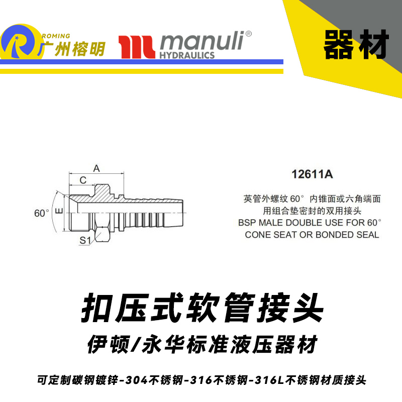 該接頭常用材質(zhì)有碳鋼彩、碳鋼鍍白鋅、304不銹鋼、316不銹鋼、316L不銹鋼,用戶可根據(jù)需求聯(lián)系我們進行采購,此外,我們還可進行加工定制各種非標(biāo)接頭以及給膠管-油管-軟管-水管進行扣壓接頭加工制作成總成。